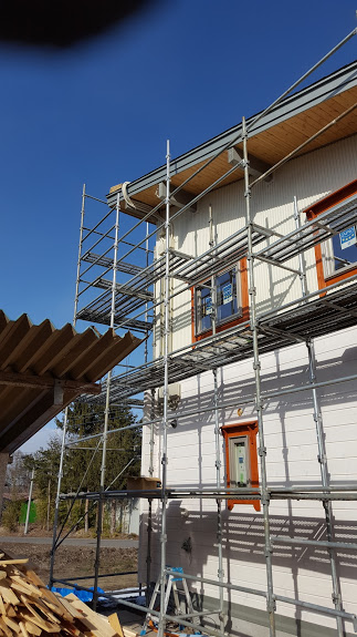 おはようございます。 野口 展孝です。 寒の戻りで冬に逆戻り~。 昨日はY君邸の太陽光の配管作業と盤取り付けで外仕事でしたが寒くて一日中体をふるわせていました。 しかしこなさないと足場も解体できないので頑張りましたよ。 高い箇所の配管作業が終わり、地デジアンテナとBSアンテナ工事も終了しました。