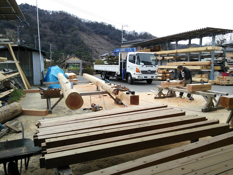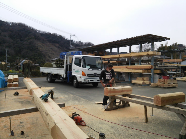 一昨日、昨日とY邸様ポスト&ビーム加工サイトがある伊豆市までユニックで行ってきました。 要件は加工の様子の見学と加工された材料(土台、管柱、加工された柱等)を持って帰ってくるためです。