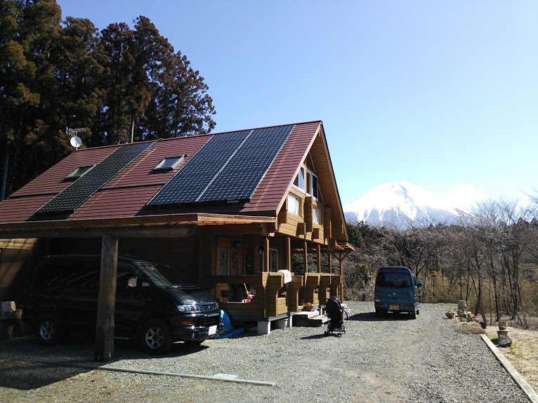 昨日は加工さいとを朝早く出発して5年前にお世話になった富士宮市のS邸様にお邪魔してきました。 ドアのハンドルが調子が悪いということでみさせていただきましたが壊れているので取り寄せることをお約束。 S様宅からは富士山がよくみえます。 富士山をバックに写真をぱちり!! いい感じですね~。S様宅は中国加工134mmのマシンカットログハウス。 1歳のお子様も木に囲まれた環境でニコニコといい笑顔してましたよ~!!