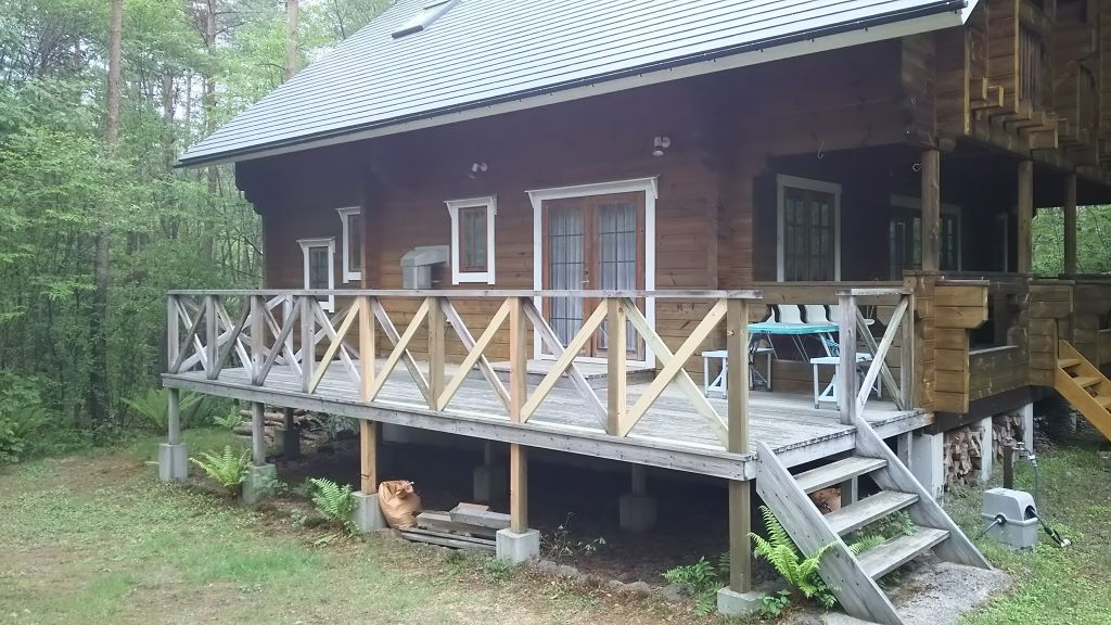 弊社会長のほうでのお仕事はプリンスランド内A様宅に芝を植える作業。 築15年のマシンカットログのデッキの手すり交換工事を段取り、工事させていただきました。 A様宅芝がいい感じですね。 既存のお客様からお仕事いただけることも感謝ですね。