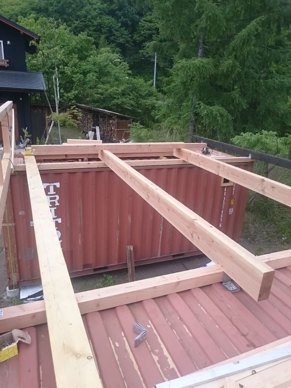 こんにちは。山崎です。 コンテナ倉庫の内部工事が終了しました。断熱の吹付をして構造用合板を壁、天井に貼りました! コンテナハウス、なかなかいいですよ~(笑) 今回は、内部を構造用合板にて仕上げましたが、いろんな感じでできますよ!今日から屋根の部がスタートしました!急きょ屋根の変更があり片流れでセッパン屋根になりましたが、どうにかなりそうです(笑) 事務所や倉庫、離れ部屋などをご検討のお客様!ぜひご連絡くださいね(^^)/ 今日も皆さんお疲れさまでした(^^♪
