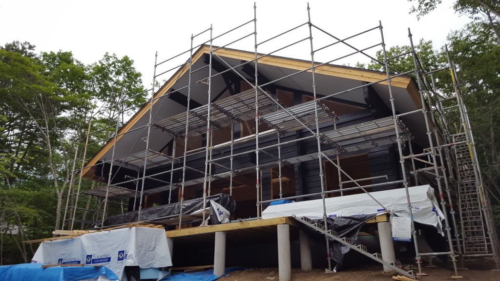それから建築中のL様宅に行ってきました。 日曜日なので大工さんは休みだったので一人で持ってきた材料をユニックをつかい現場搬入しました。 3時ごろ行って6時ごろまでかかってしまいましたが無事搬入完了。 土曜日はL様がセルフ塗装を施しましたので外部の塗装は80パーセントほど完了しておりました。 落ち着いたいい感じの色合いになっております。