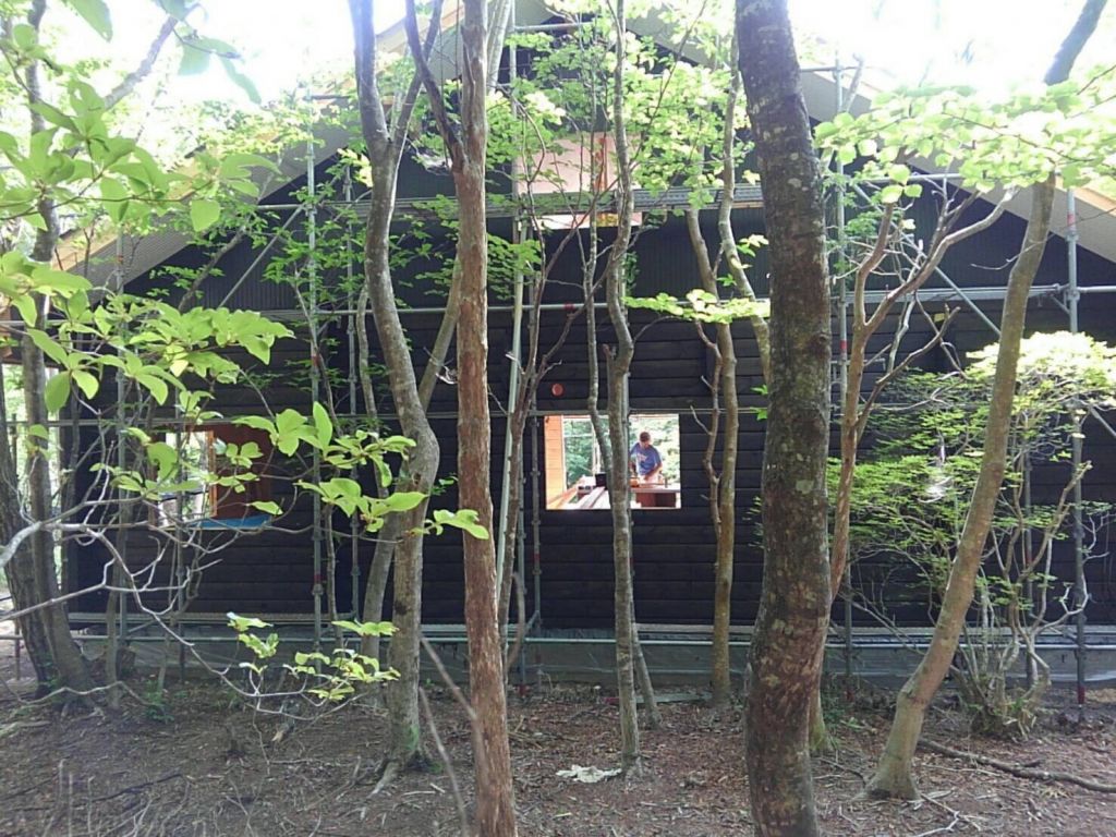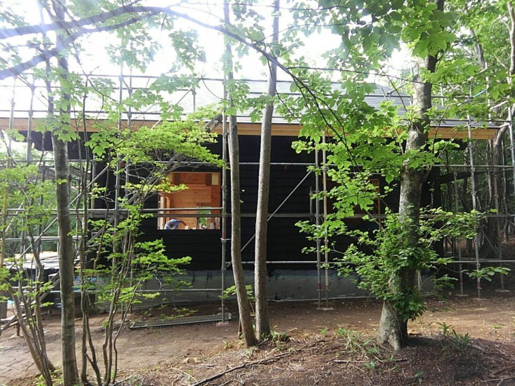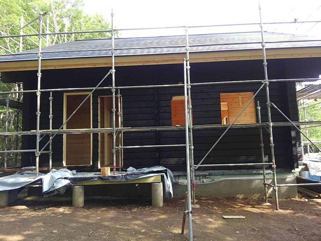キシラデコールのジェットブラックという色で2回塗りの作業ですがL様の報告によると後ろの壁があと1回塗れば完了とのことです。 昨日は会社の若い衆をつれての作業だったので一気に進みました。 皆さまお疲れさまでした。