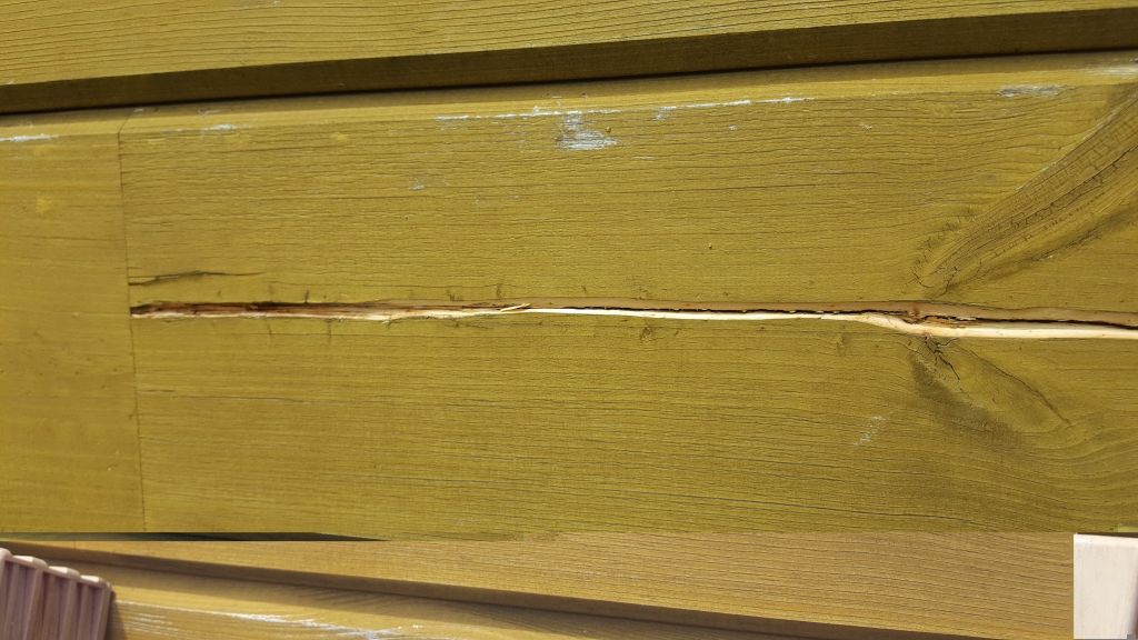 窓にかけても漏らない!! 次に壁にかけると電気穴から水がしみでてきました。 壁にかけて漏るんだったら何で他の壁のところは漏れないのか? 何が影響しているんだろうと思ったやさきに電気穴の裏にある外壁に木の乾燥によるクラックが入っているのを確認しました。「もしやこのクラックが電気穴まで貫通しているのではないか?」と思いクラックに吹きかけてみると電気穴に水が染み出てきました。 間隔をあけてかけてみると漏るタイミングも一緒なので漏る場所を特定できました。 私の中では初めてケースなので驚きました。 まさかクラックが電気穴まで到達しているとは思いもよりませんからね。 一つ勉強になりましたよ。 補修作業はクラックの幅を広げてその部分に変性コーキングを施しました。
