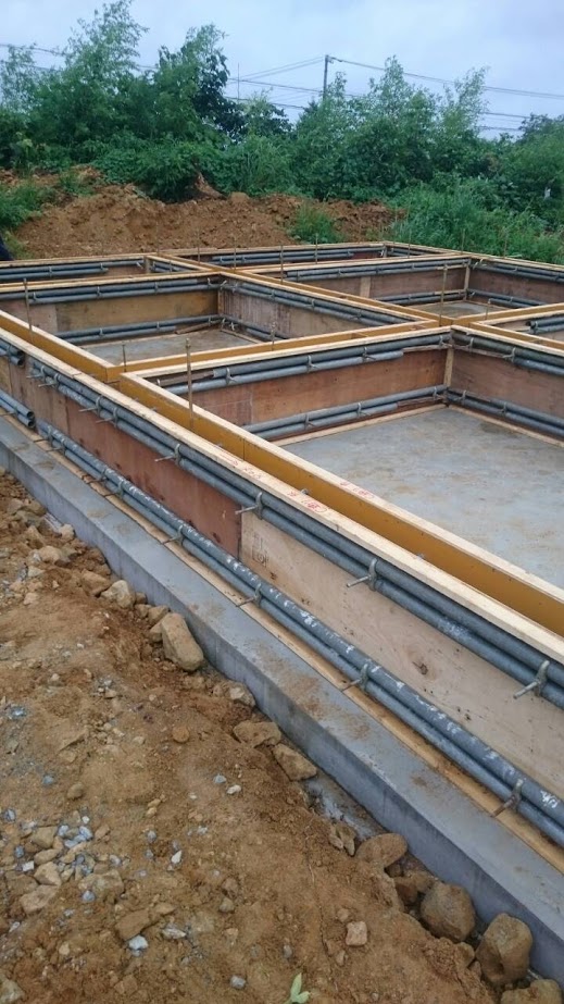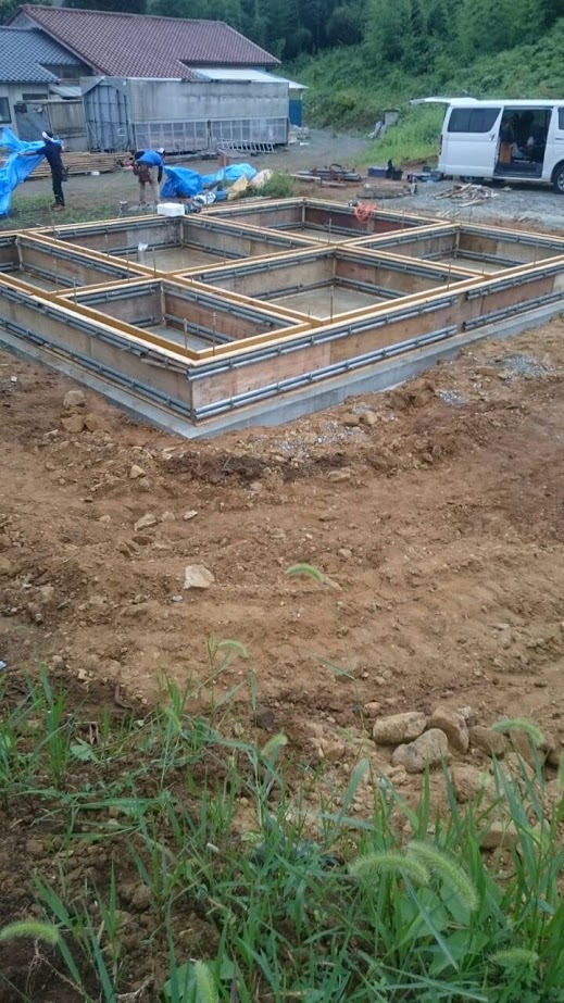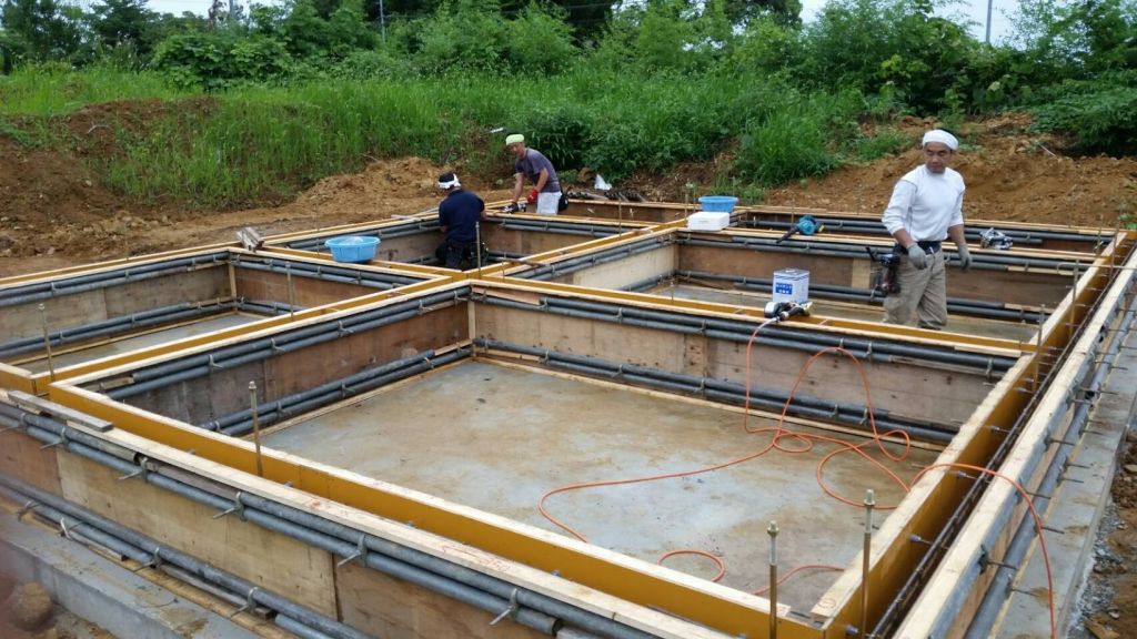 福島県K邸様の基礎型枠工事は月曜日から弊社スタッフ4人が頑張ってくれて1日半でこなしてきた様子です。暑い中お疲れさまでした。 本日型枠にコンクリート打設しますが打設は地元の業者さんにお願いしました。