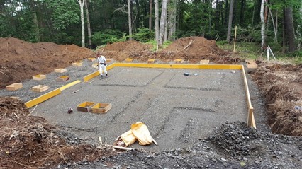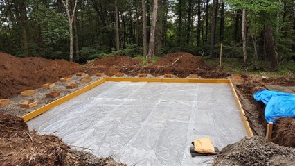 仕事はスムーズに進み、型枠を固定して型枠内でしっかりと丁張をだしました。 独立基礎はなんと22個。 なかなかのボリュームです。 土間シートをはりベースの高さをだして作業終了しました。 仮設電気のポールも建柱して9月1日に工事、送電予定です。