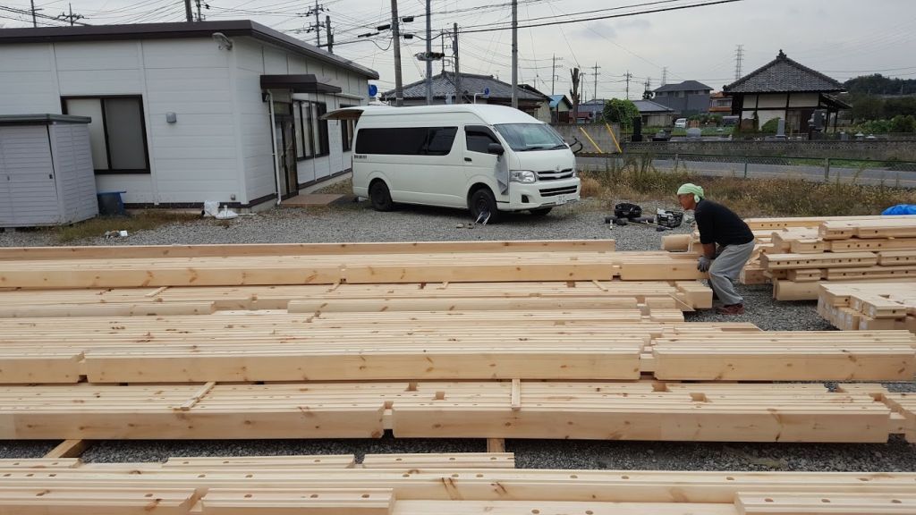 昨日は埼玉県本庄市にてT邸様のログハウス新築工事の建て方が始まりました。 T邸様は中国ログキットの135mm×175mmのD型ログにて建築します。 弊社の中国ログハウスキットといったらマンパワーでの荷下しが恒例ですね。 昨日は6人で作業に挑みましたよ!!