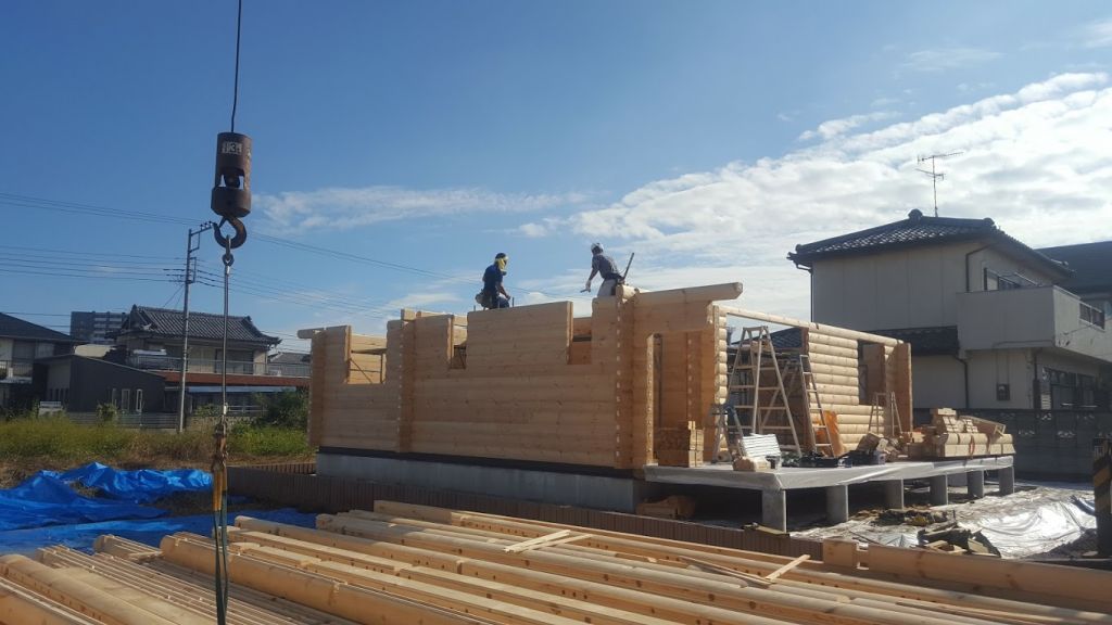 埼玉県本庄市T邸様ログハウス建て方工事!