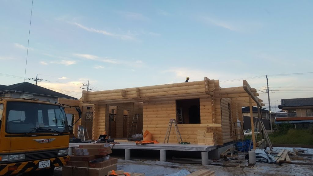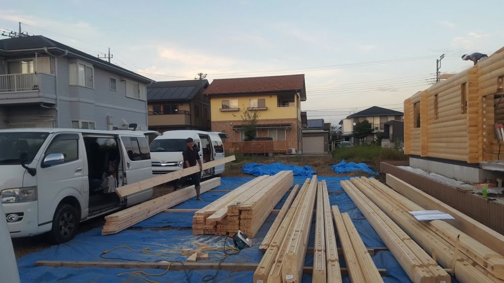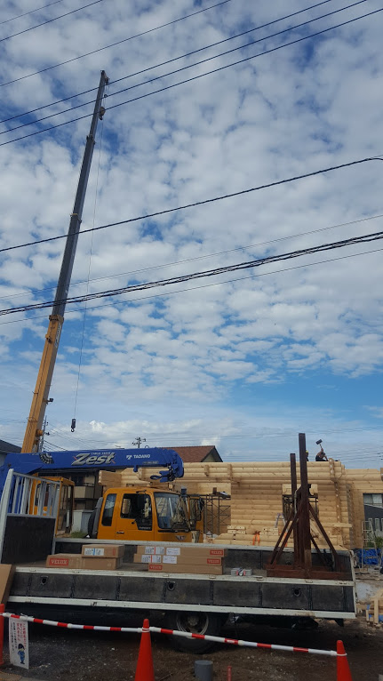 昨日の工事のお話です。 埼玉県本庄市T邸様ログハウス工事は13段目から17段、2F根太工事が完了しました。今日はログ組が終わり、小屋組み工事に入ります。 今から出発!安全第一頑張ります。