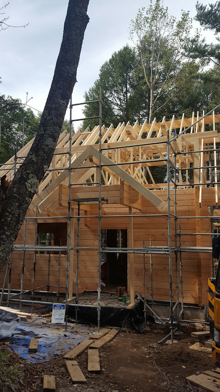 茅野市K邸様の建て方工事は小屋組み作業中です。 両サイドのドーマーの垂木をかけ、金物工事、転び止め工事をこなしました。 チーム高原は今回少人数での体制ですので、山梨北杜市から数年前に知り合った大工さんの柴田さんにきてもらってます。 柴田さんもいろいろ忙しい中できていただいているので本当に感謝ですね。 今日あと一日きていただけるそうです。「アザース!!」