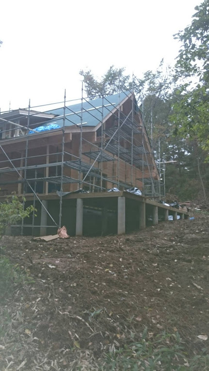 茅野市K邸様ログハウス工事雨仕舞完了、軽井沢K邸様伐採工事が終わりました。