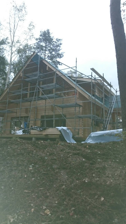 3. 茅野市K邸様ログハウス工事雨仕舞完了、軽井沢K邸様伐採工事が終わりました。