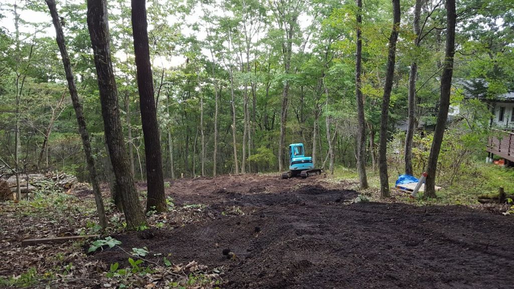 軽井沢K邸様中国マシンカットログハウスの工事は今週は伐採作業と昨日伐根作業が終わり建築するためのフィールドができましたよ。 結構な傾斜がありますので基礎は1800mmの高基礎、駐車場、アプローチを模索しながら進めていきます。 来週から丁張、床掘り、ベース工事に入ります!