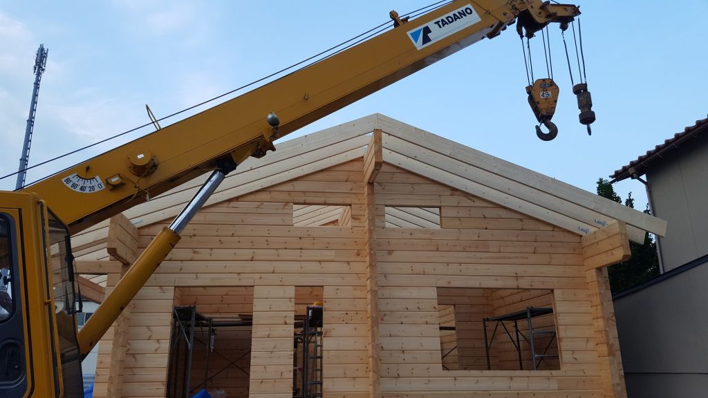 金沢市K邸様ログ建て方工事! 垂木がかかりました!
