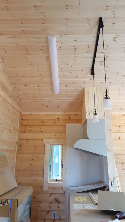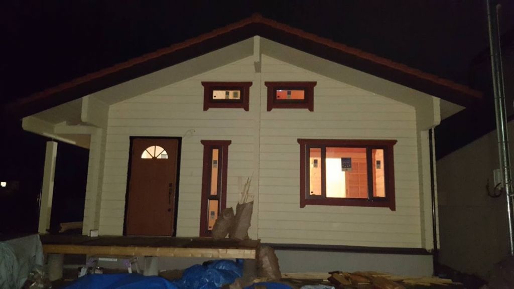 山中大工さんから写真がラインにて送られてきましたよ! 昨日の電話では造作工事は終盤にさしかかってきました。 照明器具も取り付けられていますね~。 キッチンも入りましたよ! 来週山崎さんと片付けにいきまして床のウレタン塗装を施工してきます。 仕上げ工事は畳、タイル工事、クッションフロア工事、設備機器取り付け工事となります。 月内完成目指して頑張りますよ! 外部もいい感じ。 山中大工さんもう少しです。いつもありがとうございます。
