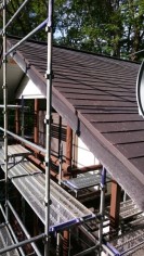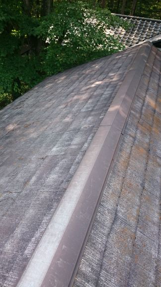 今回、コロニアルをそのまま残してその上にベニアを貼りガルバニウム鋼板の横葺きで仕上げました!コロニアルの処分費は高いのでこれだと安く仕上がりますよ!