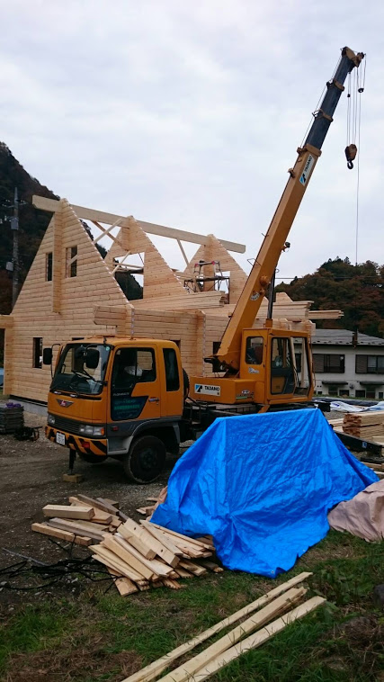那須塩原市塩原にて建て方工事を進めているK邸様現場は垂木が昨日かかりましたよ! さすがにチーム高原!