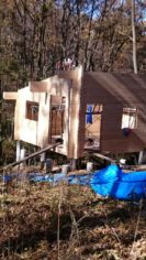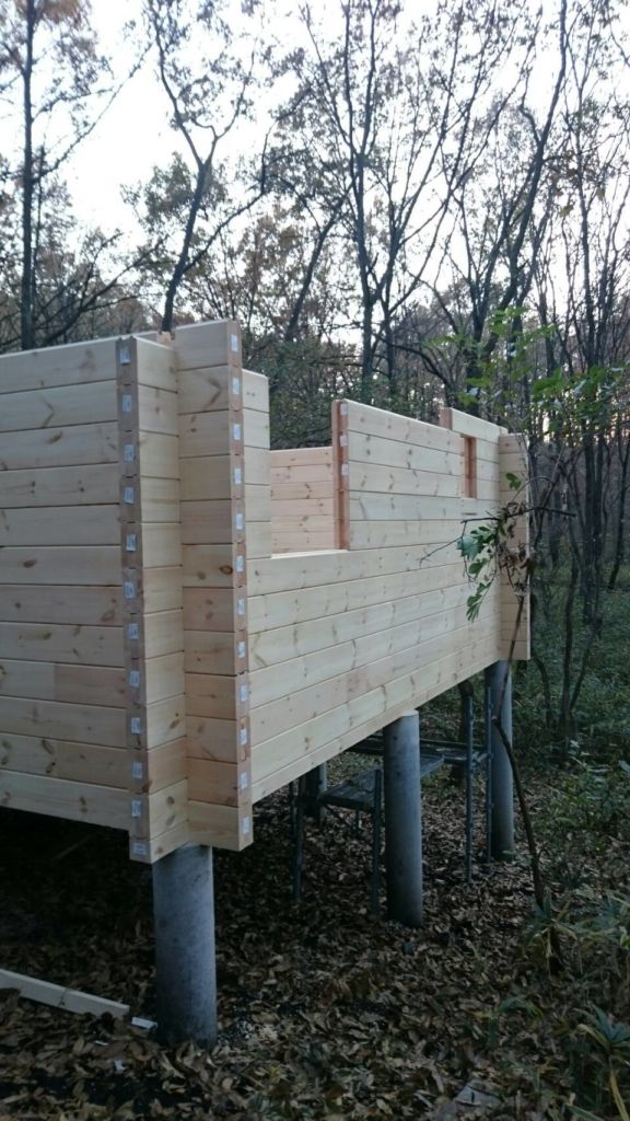 吾妻町のN様邸の山小屋のログ組が終了して、今日は足場を架けています。