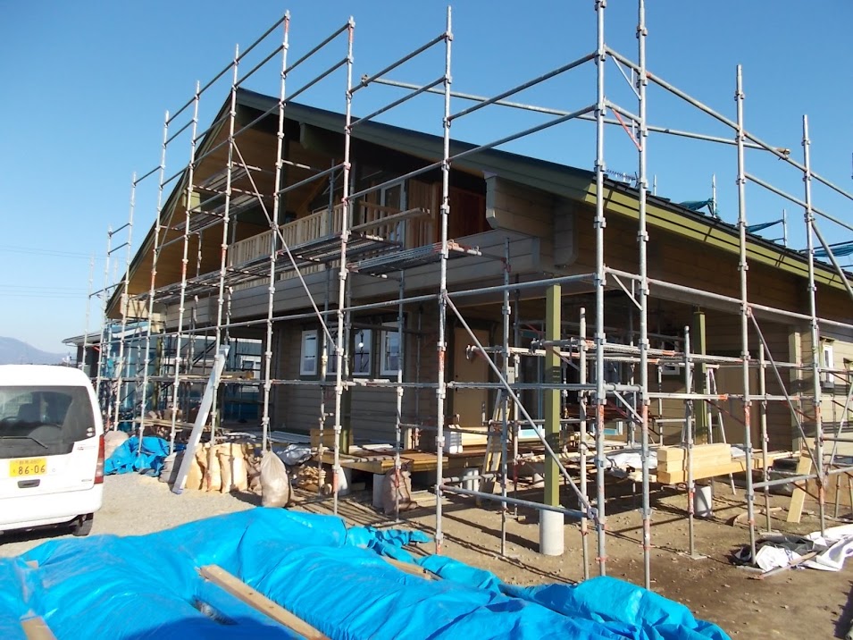隣町の松本市ではK邸様ログハウス工事の基礎工事が施工されています。 先週の暖かい天気の中無事コンクリート打設できたようです。 寒さ対策の養生施工が少なくて助かりましたよ。安曇野市N邸様建て方後にK邸様の建て方予定を組みたいと思います。