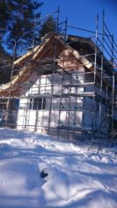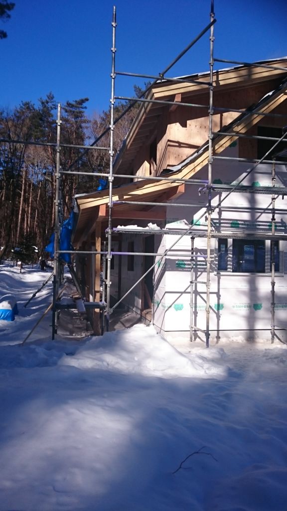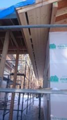 A様保養所新築工事では、軒天工事に入っています。サッシもおおむね取付終わりそうですね!だんだんに形になってきましたよ!