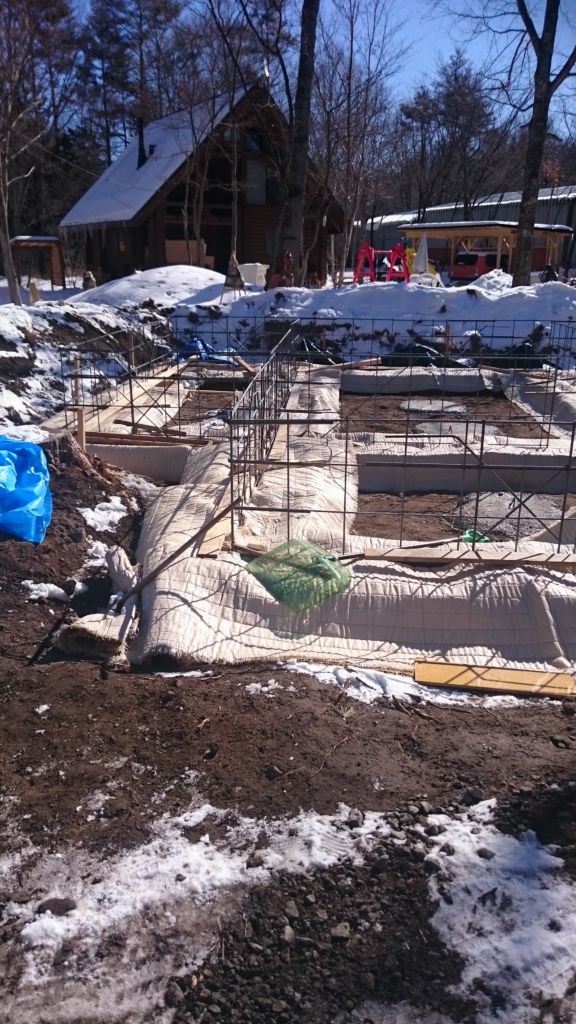 嬬恋村I様邸、ベースコンクリート打設が終わり現場は養生をしている状態です。