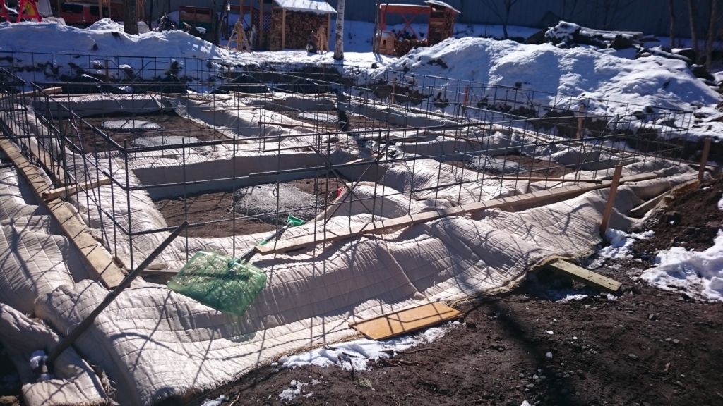 これから立ち上がりの型枠工事に入り、立ち上がりのコンクリート打設になります。もうしばらく雪が降らなければいいなと思いますが・・