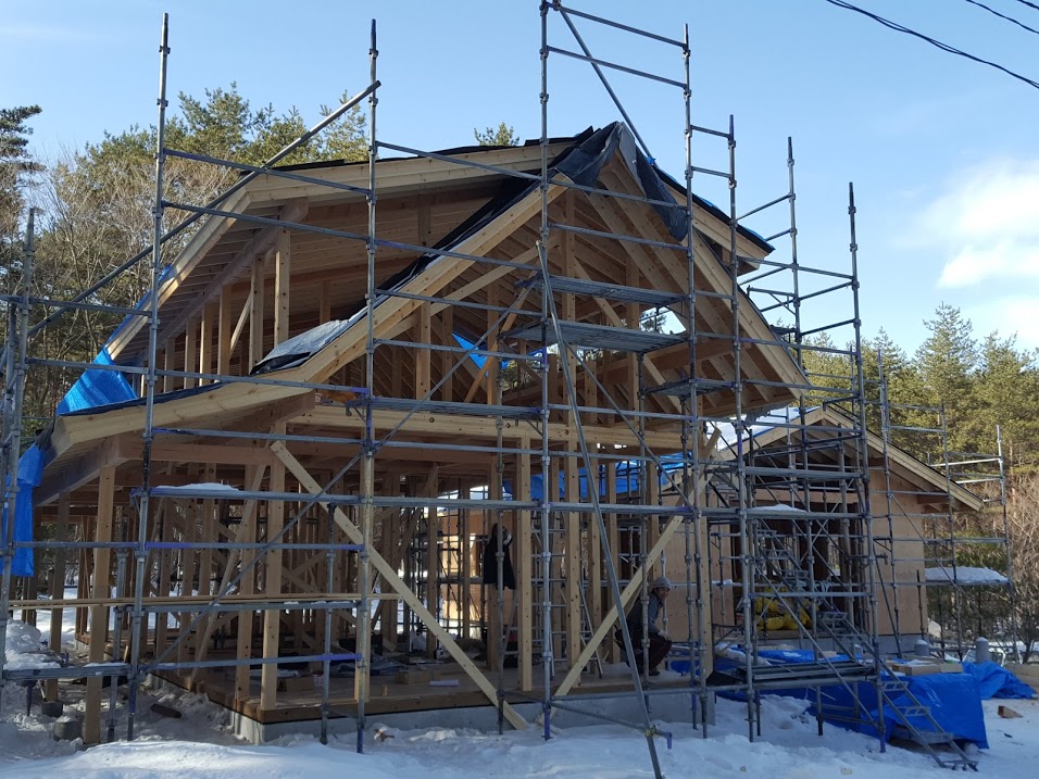 午後からは仕事に行ってきました。 進めているスキャンDホームでの保養所工事の様子をみてきましたよ。 フサユキ大工さんが工事進めてくれ昨日は金物工事にとりかかっていました。