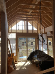 さてお仕事ですが、昨日は安曇野市N邸様現場にて作業してきました! 屋根板金工事が進んでおりますね。 棟の仕上げは今週になりそうですがほとんど葺き終わってましたね。 大工さんの造作工事も進んでおります。 2Fの外壁部分から作業初めてまして掃き出し窓、窓が取り付けられていました!