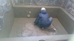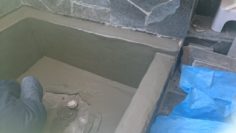 保養所リフォームですが、浴場の防水工事が始まりました。