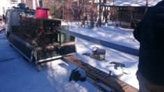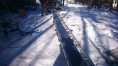 現場で一枚一枚成形して屋根に上げています。今日成形しているのは長さ11m強あります。