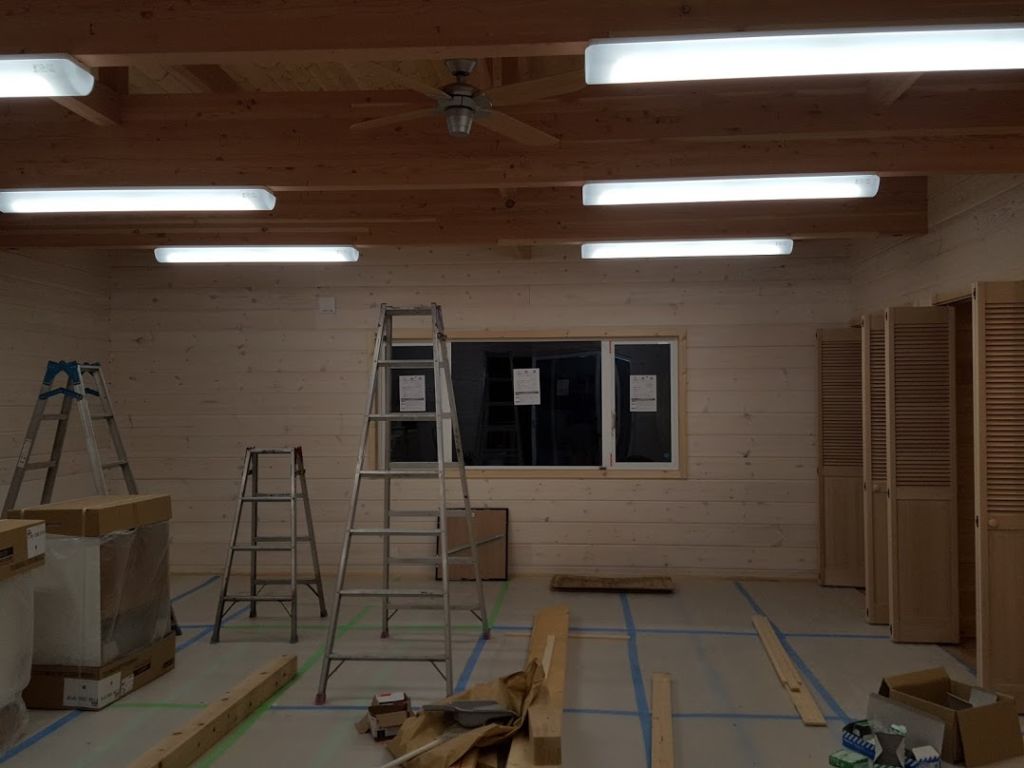 今年1月から北軽井沢エリアでA企業様の保養所をスキャンDホームで建築させていただいておりましてようやく完成の目途がたってきました。 照明が取り付けられると一気に完成が近づいた感じしますね~。