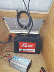 そうそう、少しでも話のきっかけずくりが出来たらとDIYソーラーパネルを展示させていただきました。 1枚105Wのパネルにて発電バッテリーにつなげて蓄電する装置です。 今日は暑かったので扇風機をまわすという実演しておりましたが反応はいまいちでしたね(苦笑)