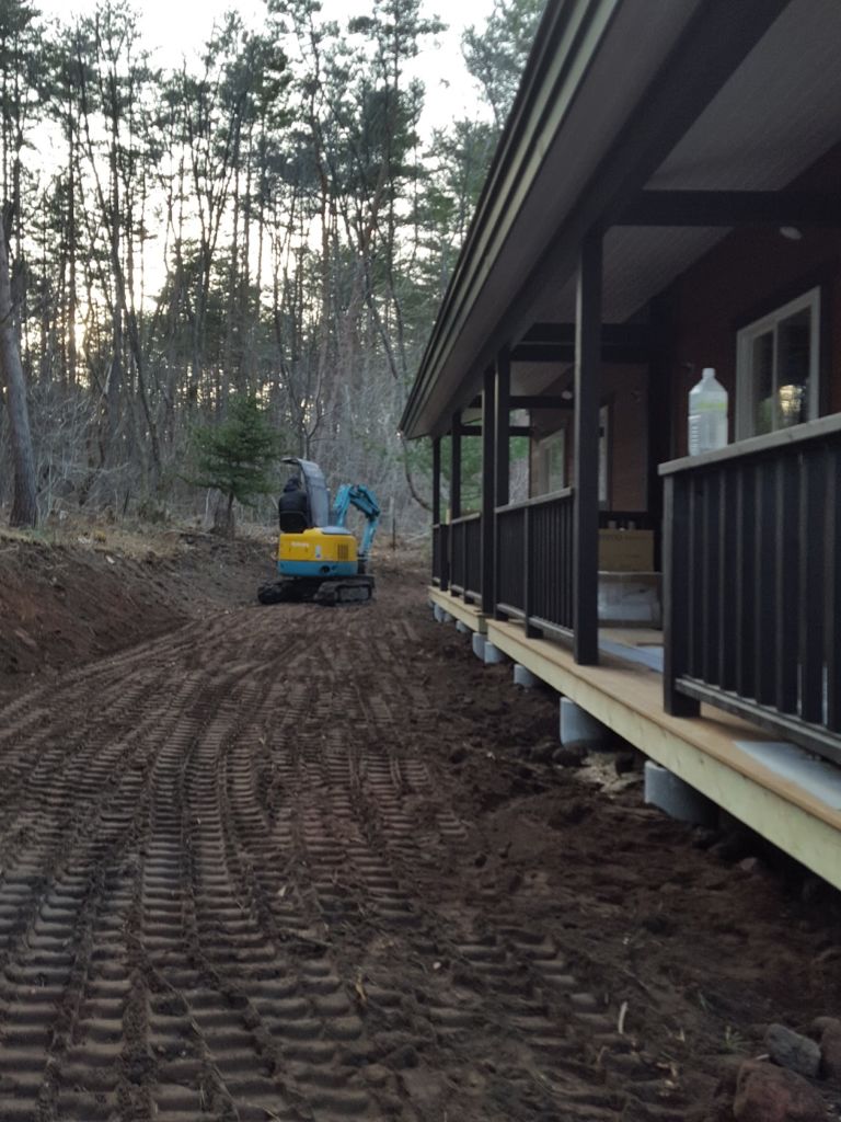 山崎さんとこんぺーさんが外部造成工事に入りだいぶ形になってきましたね。