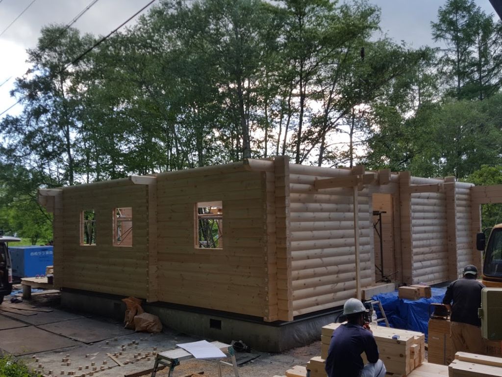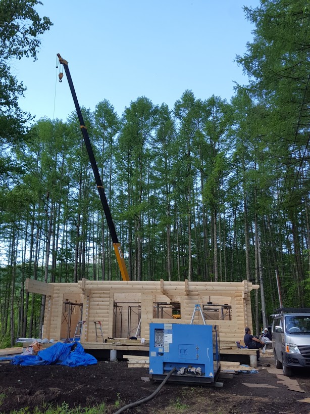 長野県茅野市蓼科L邸様ログハウス工事!ログ組んでます!