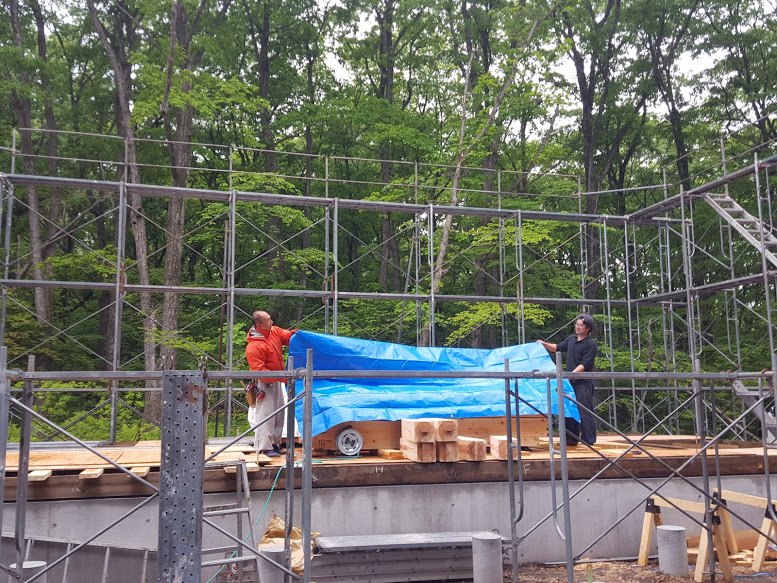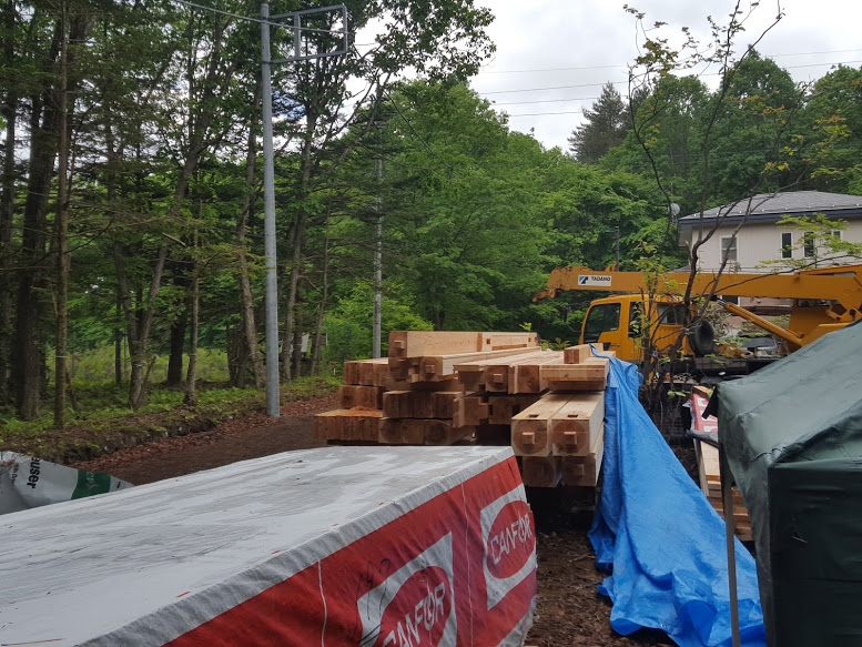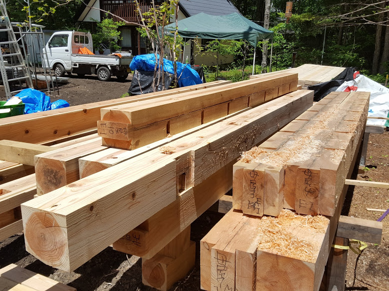 さてお仕事ですが、高原都市開発では国産杉ポスト&ビーム、国産杉ティンバーフレームの加工・建て方・工事も承ります。 昨日は加工を承りました現場にてティンバーフレーム建て方工事でした。
