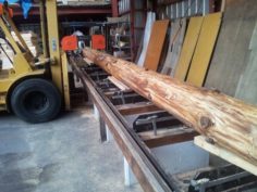 丸太の杉から製材した200㎜の角ティンバー材です。 片流れスタイルの家で南面の母屋を支えるポスト長さは約8m!! 迫力ありますでしょ~。 弊社倉庫には丸太を製材できるハスクバーナー社のホリゾンが設置されており10m長まで加工することができます。