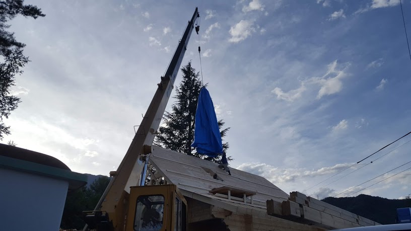3. 安曇野市F邸様フィンランドログハウス建て方工事進めています!