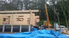 3. 御代田町M邸様シベリアパインD型135m×175㎜ログハウス建て方工事