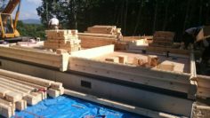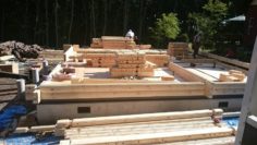 さてお仕事ですが御代田町M邸様シベリアパインログハウス建て方工事が始まってます! 火曜日に荷下ろしして昨日はステージ作成、ログ積みが始まっています。 チーム高原フルメンバーですので仕事もスピーディですよ!!