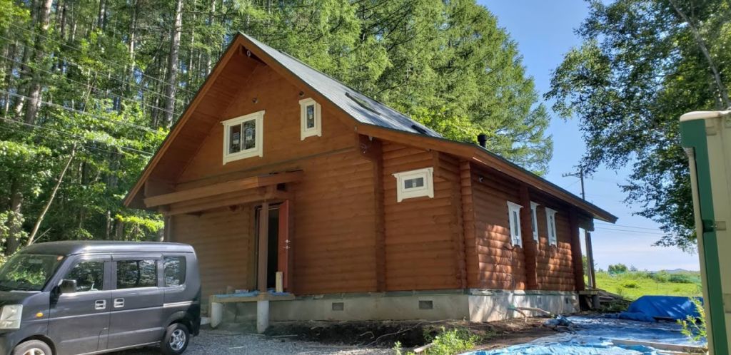 茅野市蓼科L邸様ログハウス現場は足場が外れて外観お披露目となりました。 お客様セルフペイントのログハウスです。 最近ではお客様セルフペイントの現場が多くなってきました。 ログハウス建築で一番コストダウンになる部分がセルフペイントですからね。 足場もかかっているし慣れれば結構な短時間で塗装することできますよ! 塗り替えする際も経験値があるので自分でやってみようかなという事もできると思いますよ~。
