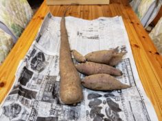 昨日神奈川の電気工事店の矢作電気さんからサツマイモ。 山崎さんのお父さんが作っている長いもをいただきました。