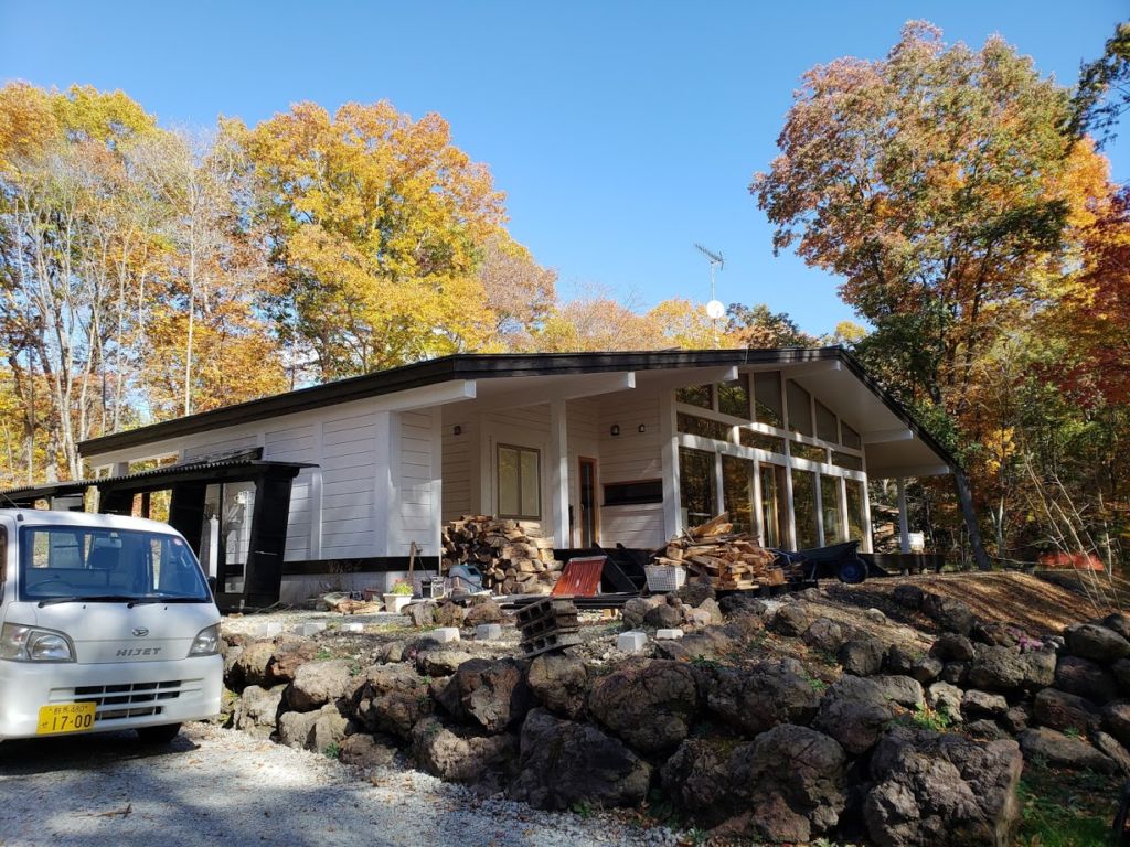 さてお仕事ですが一昨日に引き続き薪割りをした現場にいってきました。 薪小屋移動するので岩佐君を頼んでいたのですが一昨日の村の仕事の残業で午前中はお休み。 おっと参ったなとおもったのですが午前中は土台のピンコロを据える作業がありましたで午後から出勤してもらい午前中据えピンコロの上に見事のせることできました。 のせた後は一昨日薪割した薪を軽トラにのせて薪小屋におさめましたよ!