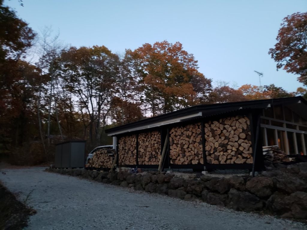 夕方お客様がみえて移動した薪小屋の様子を喜んでいました。 喜んでいただくお仕事ができて大満足! 体は疲れましたが充実感がありますね!