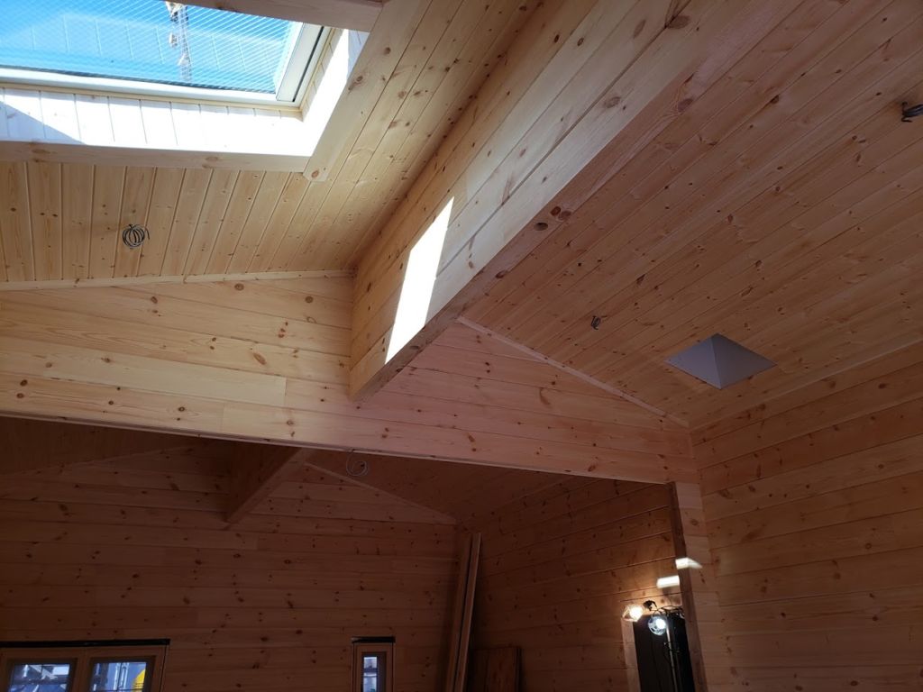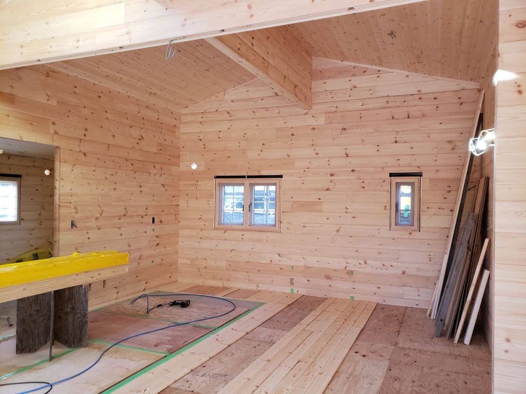 帰り道に只今軽井沢にて造作中のA邸様の進行状況確認してきました。 山中大工さんが段取りよく進めてくれています。 天井部分が終わり、床板施工に入っています!