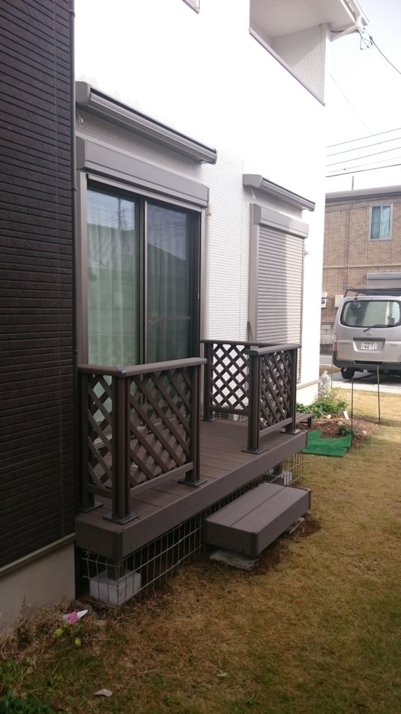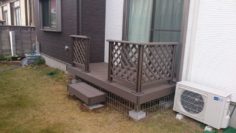土台や束柱はアルミになり、デッキ材は人口木材になります。ウッドデッキに比べて金額は少々高くなりますが、メンテナンスが要らないので長い目で見るとお得かとも思います。