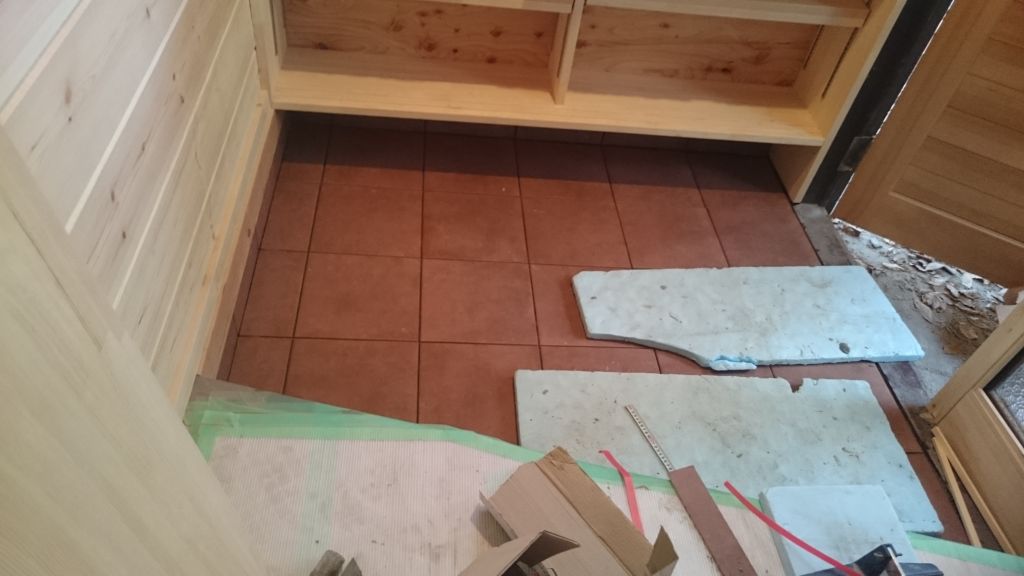 雅建築の雅君をはじめ応援の大工さん達の頑張りで、ほぼフルリフォームでしたが短期間で終わりました。昨日から左官屋の官業さんも入りタイルを貼ったので、薪ストーブを搬入できる段取りもできましたよ!