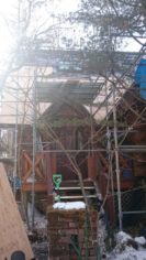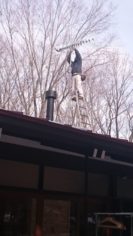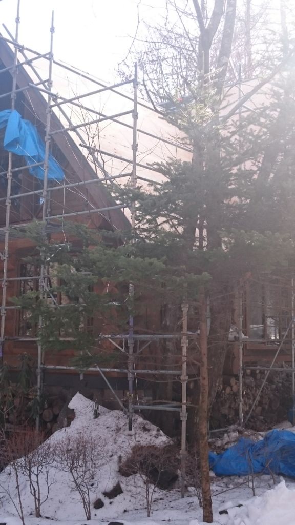 昨日から別荘地内のS様邸も屋根下地、野地貼りが始まりました!相変わらずマーモン先輩の段取りの良さが際立っています!前日に荷上げをしており煙突廻りを仕上げていたので、お昼にルーフィングを届けに行った時には半分終わっていました(^^;)