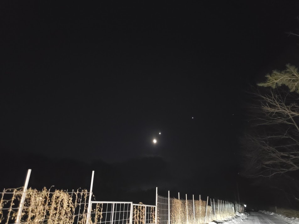 ここ浅間高原は夜空が天体観測になるぐらい星が綺麗にみえる場所です。 月と金星が接近して綺麗に光っていました。 写真は下手くそでしたよ(苦笑)