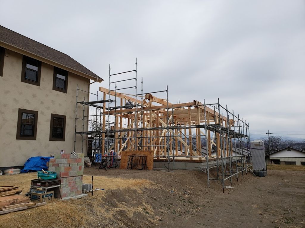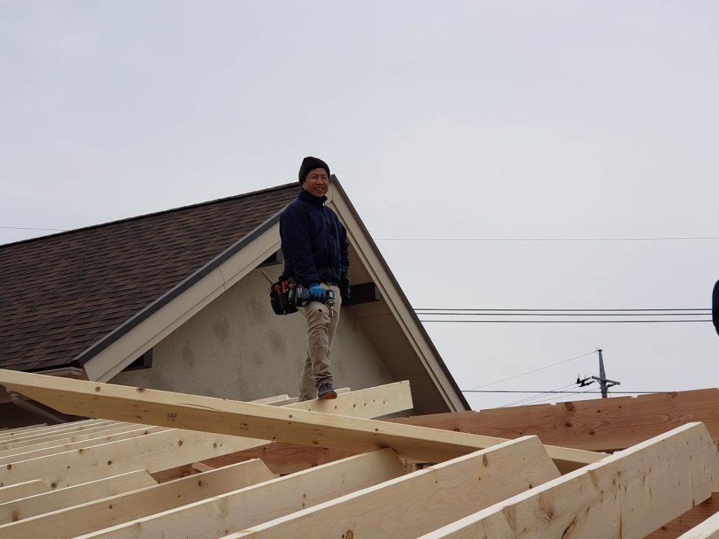 さて昨日はY邸様美容室スキャンDホームの建て方工事に参加してきました。 久々の建て方仕事で体なまってましたが動いているうちに感を取り戻してきましたよ。 フサユキ大工さんと垂木がけ、+転び止め施工さえていただきました。 これからはフサユキ大工さんを私は師匠としていろいろ教えてもらいたいと思っています!!