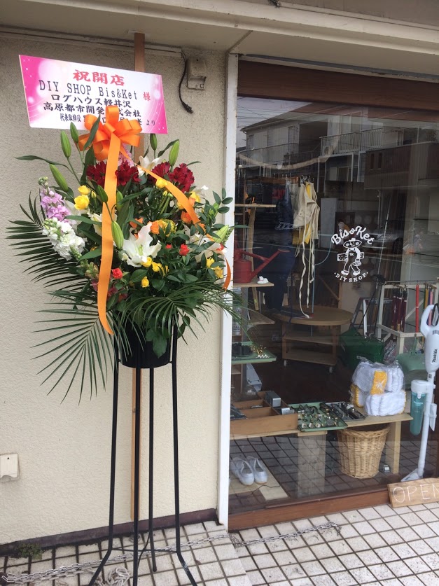 昨日は藤沢市のDIYショップ兼勝手に高原都市ログハウス相談所のBis&Ketがオープンしました! 昨日のあさイチで花を注文してオープンの雰囲気と中野君の門出をお祝いさせていただきました!
